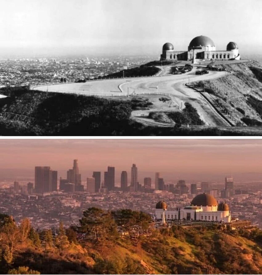 14. Griffith Observatory with Los Angeles in the background - 1930s and 2019