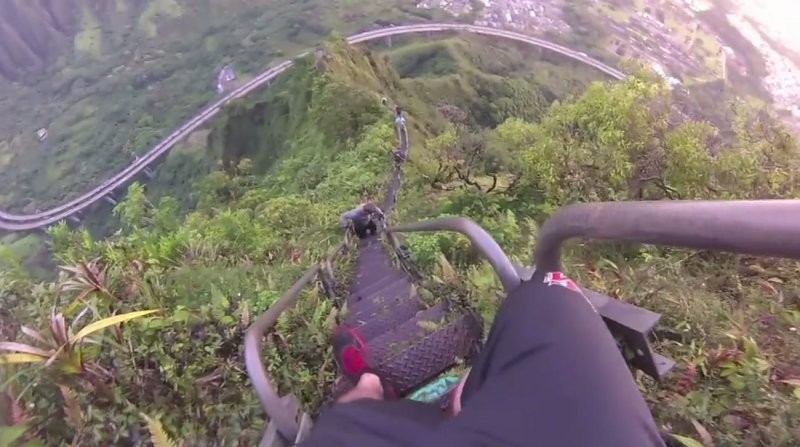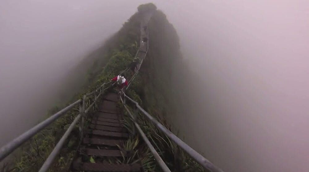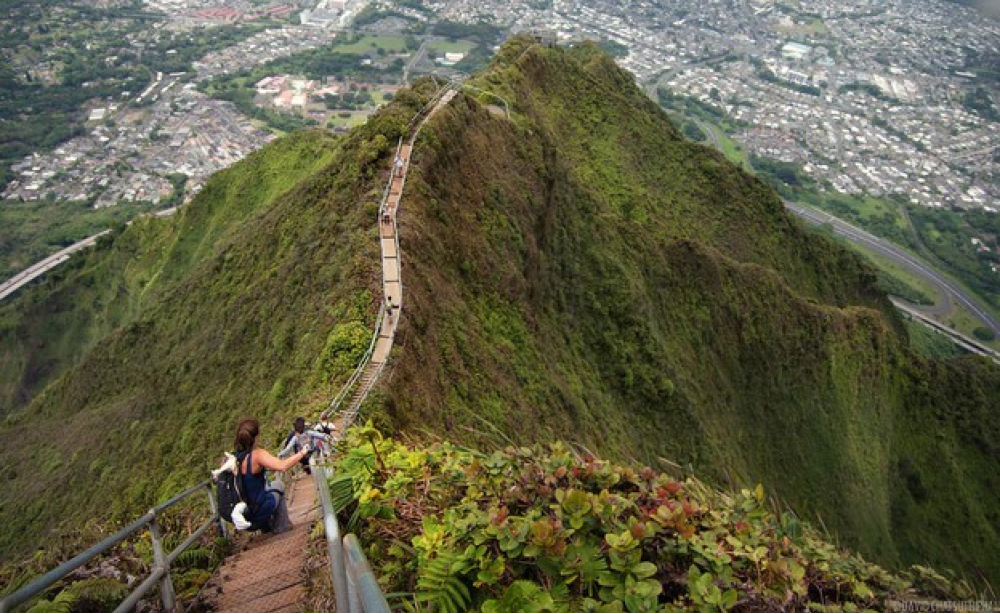 Hawaii has Haiku Stairs, a favorite of adventurous tourists or "stairway to heaven". It was built in 1942 to lay a cable to US naval base. This hiking trail has been closed since 1987 for visitors, but the most desperate tourists still find ways sneak onto her.