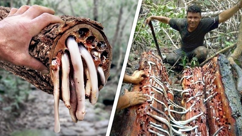 Shipworms (Teredinidae) are called shellfish that live by eating wood. For now scientists know about the existence of about 60 species - representatives of some varieties can reach a meter in length. At the front end of these creatures there is a small shell, with the help of which they and make deep holes in the wood. In the process of monitoring worms, scientists noticed that the first thing they do is cling to the wall of the passage with the help of a leg and only then moves the shell. Commonly made worm holes are 6 cm in diameter and 2 meters long.