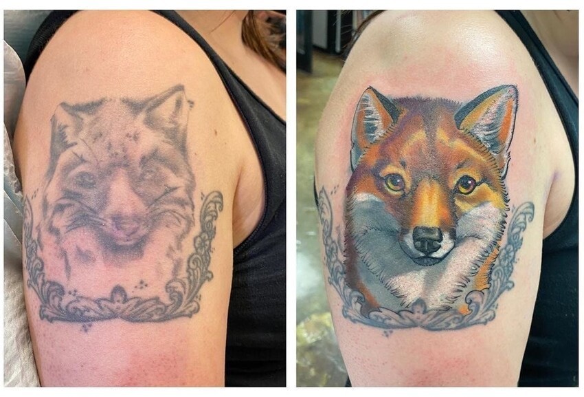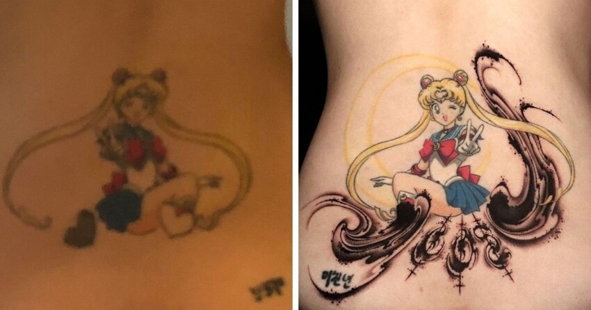 We have collected for you examples of how tattoo artists give new life to tattoos.