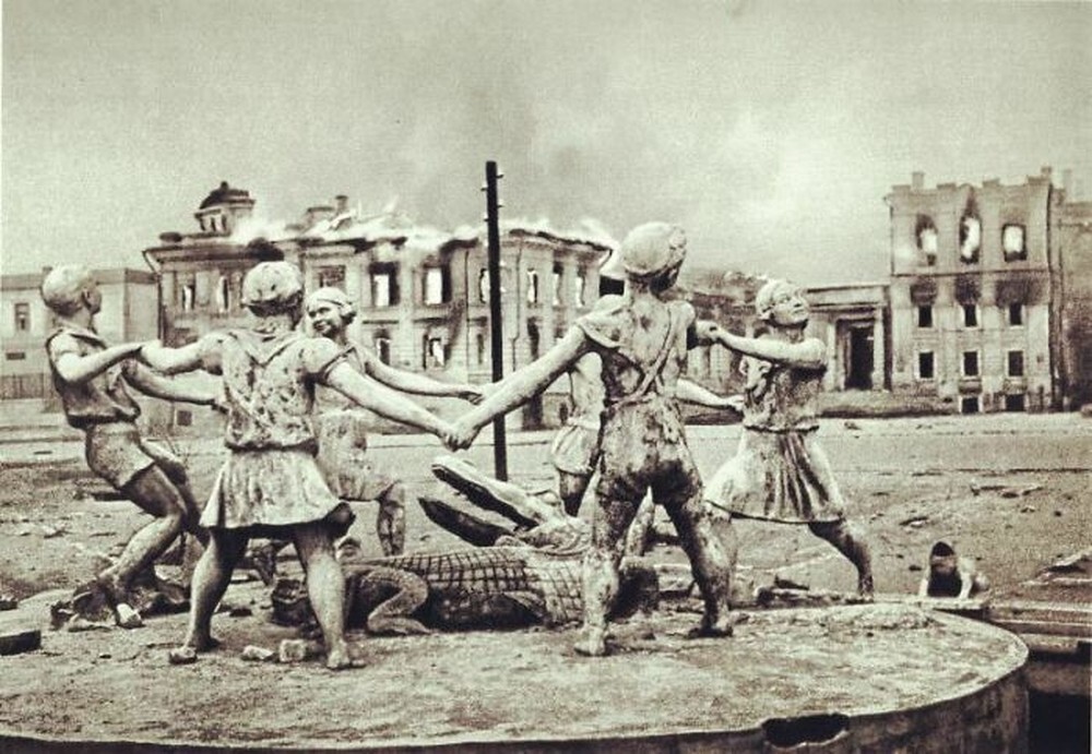 33. Fountain "Barmaley" or "Children's round dance" in Stalingrad, photo by E. Evzerikhin, August 23, 1942