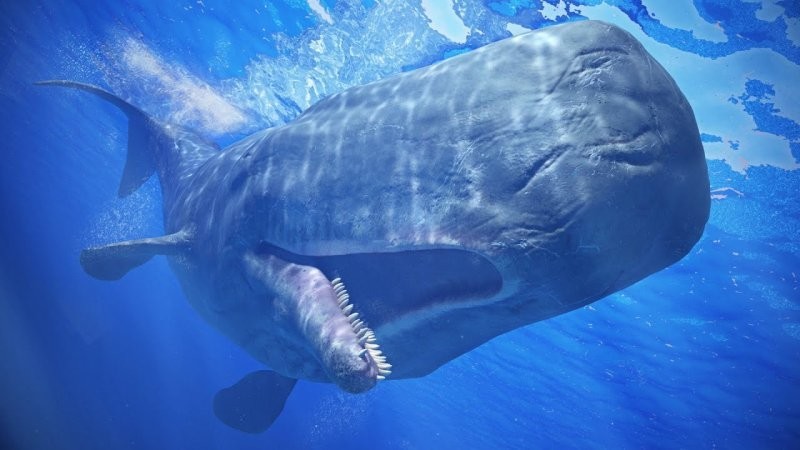 Despite outward calmness, these animals can sometimes attack other cetaceans. They have very powerful teeth that can be compare with the teeth of extinct dinosaur predators. And they are few of them use, preferring to swallow the prey immediately and whole, that is, it is in his stomach while still alive. The diet of sperm whales includes mostly shellfish, and sometimes they can prey on giant squid, inferior to them in size only 2-3 times. By the way, once an animal swallowed the man whole. He sank a whaling boat and swallowed sailor James Bartley. Having overcome the sperm whale, the hunters butchered the carcass and found your friend there. The sailor was unconscious and wounded, but alive. survive James Bartley survived, but seriously deteriorated his health.