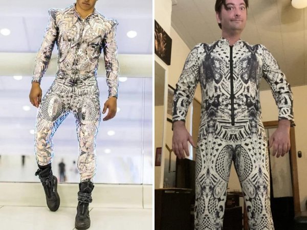 My friend and I bought this silver jumpsuit for a party from an obscure website.