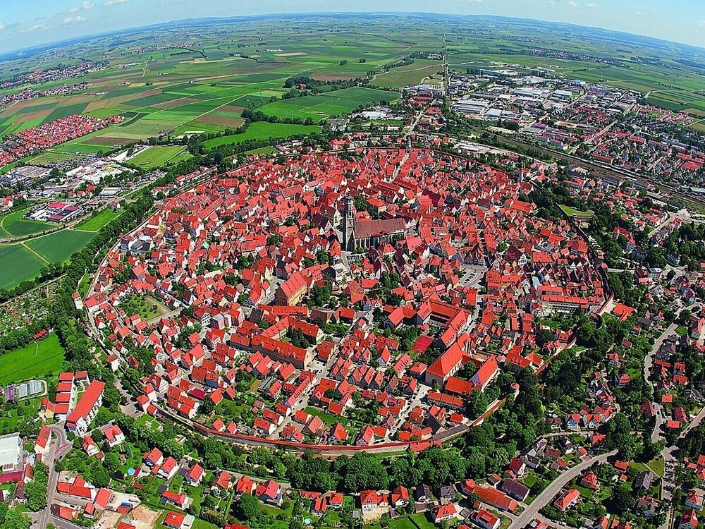 Nördlingen is a city in a meteorite crater, but the crater itself is much larger