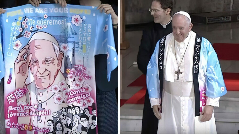7. When Pope Francis visited Japan in 2019, he was given a custom-made anime kimono, which he immediately tried on