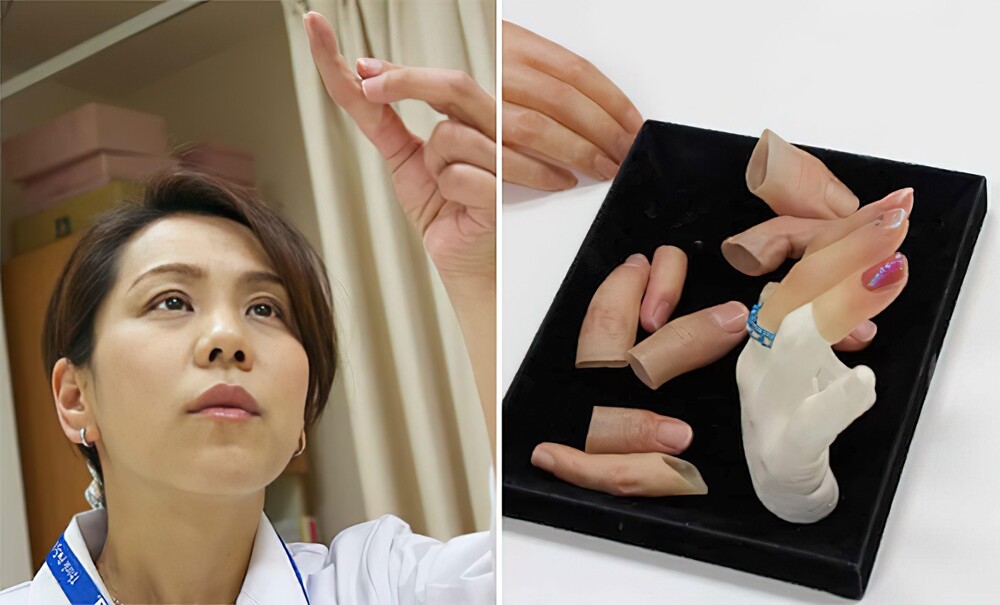 25. This is Yukako Fukushima. She makes pinky prosthetics for cocks yakuza who have gone through the ritual of yubitsume ("shortening the finger")