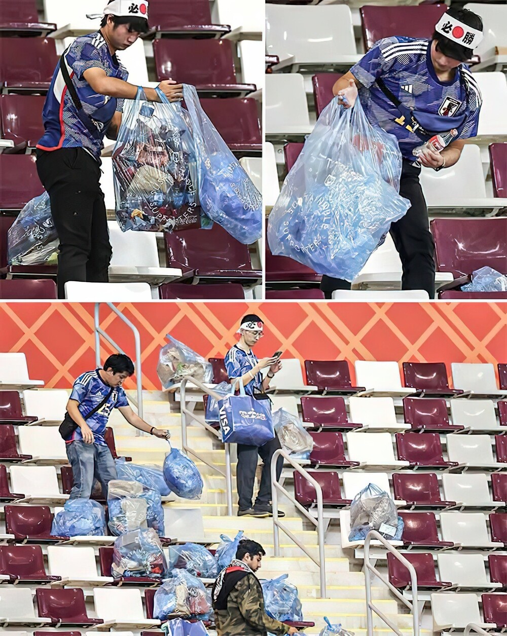 6. And the Japanese fans after that memorable match stayed at the Khalifa International stadium to clean up the trash.