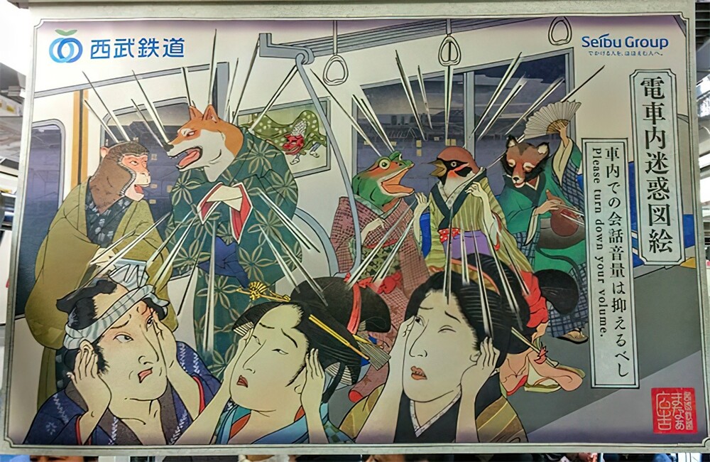 21. And a little bit about railway etiquette in Japan: the poster "Please speak more quietly"