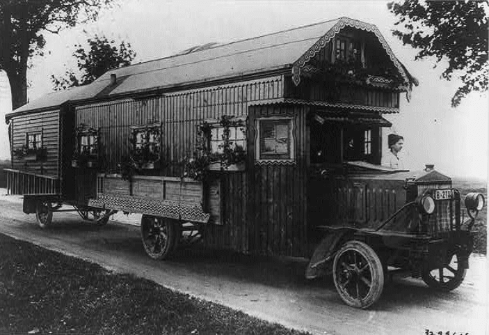 An Austrian nobleman takes a mobile pastry shop on the road, 1922