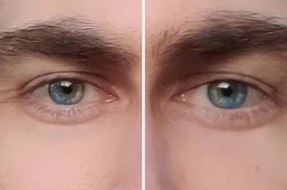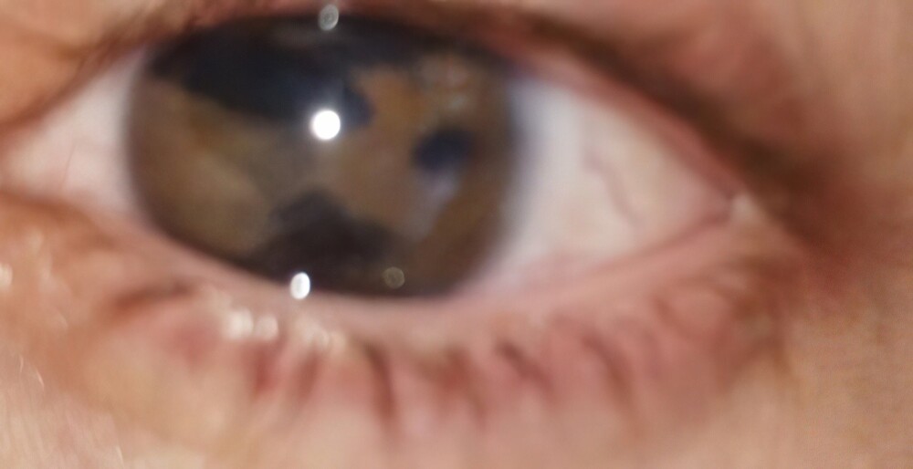 2. This person has a rare disease called the syndrome Axenfeld-Rieger, as a result of which there are three pupils in the left eye