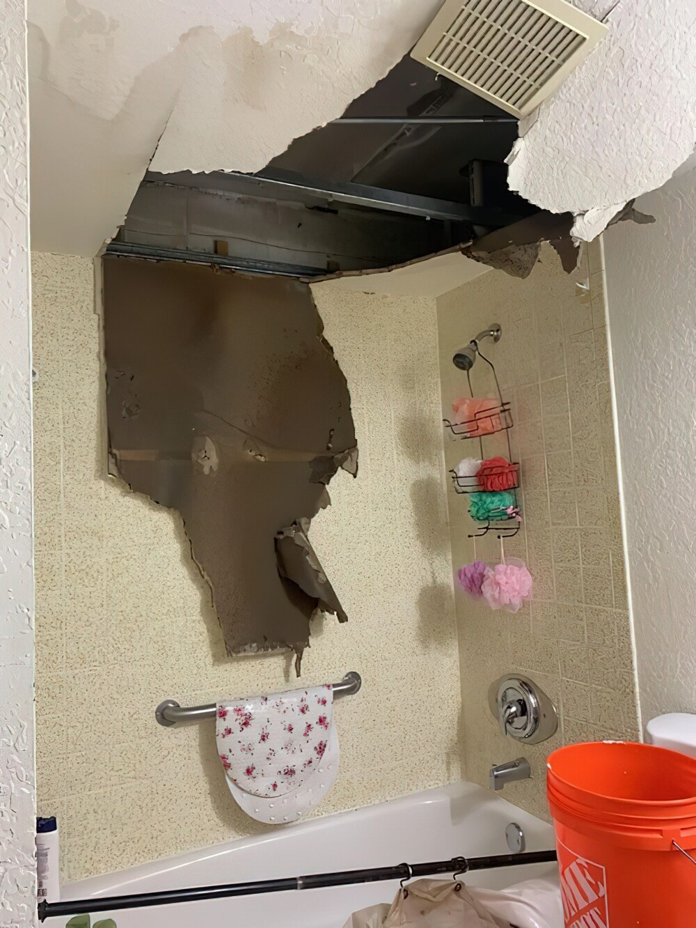 9. “The neighbor on the floor above left the city for more than 3 weeks, leaving an overflowing sink. Walls and ceiling in our bathroom and bedroom soaked through"