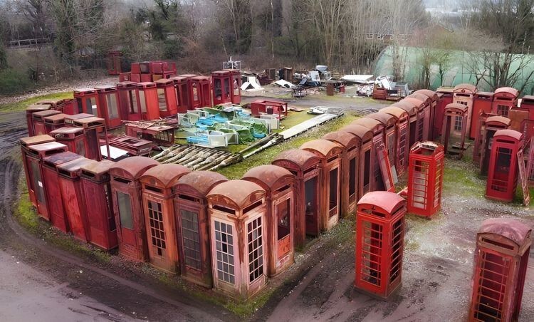 The Incredible Graveyard of British Red Phones booth hidden next to the railway line in Surrey