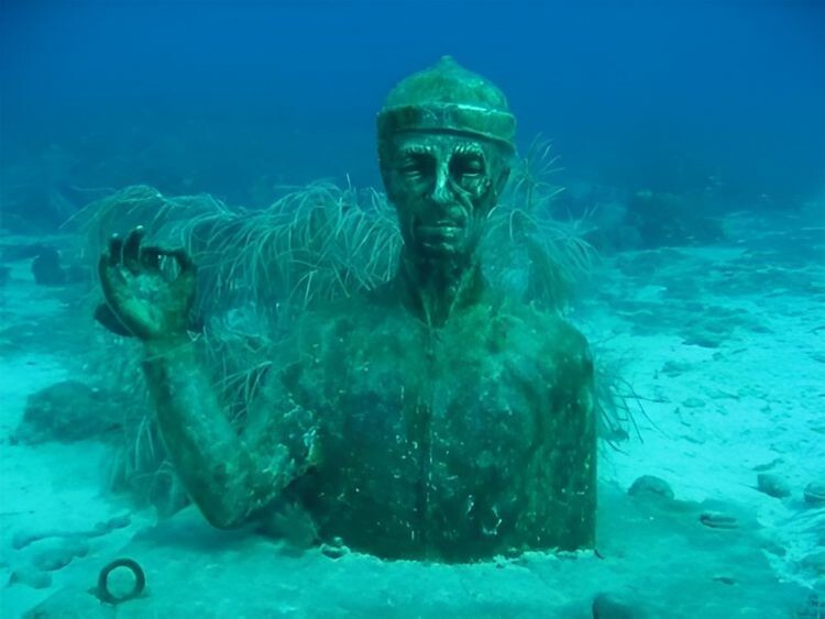 Underwater statue of Jacques Cousteau in Guadeloupe