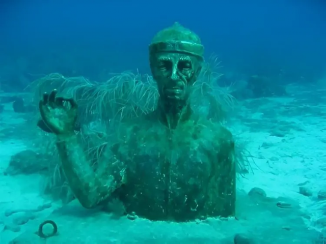 Underwater statue of Jacques Cousteau in Guadeloupe