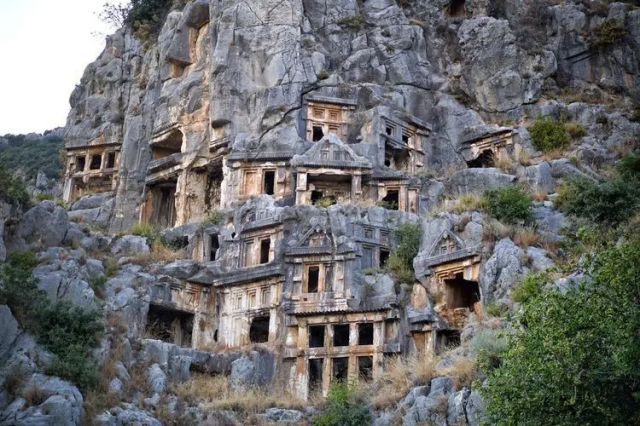 2,400-year-old rock tombs found on the rocks of the Mediterranean port city of Mira in Turkey