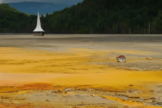 Flooded church in a toxic lake, Romania