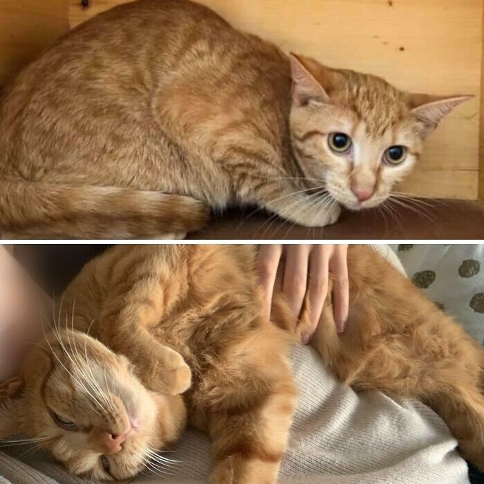 17. Before and after the cat was taken from the shelter. So much happiness!