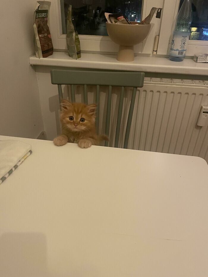 4. "Found this redhead near work. Homeless mother cat took three and left him. Decided to pick it up, and through week found a family for him"