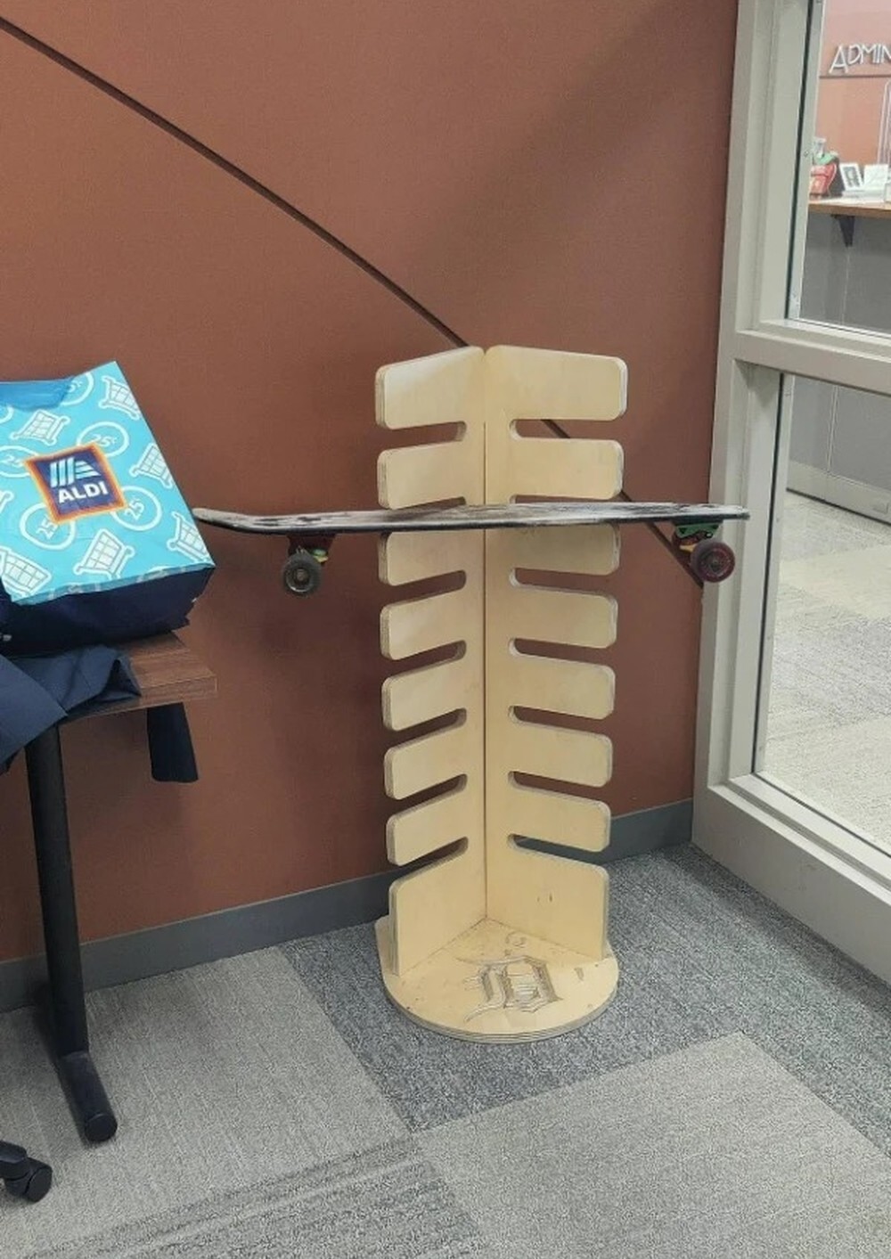 15. “At the school where I took the order, the office has a place to park a skateboard.”