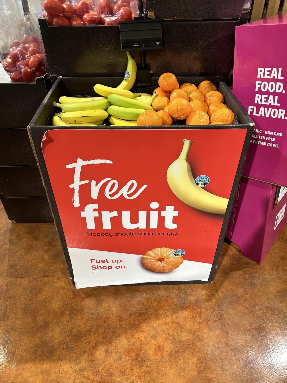 7. “You can grab some free fruit at my local grocery store while you shop.”