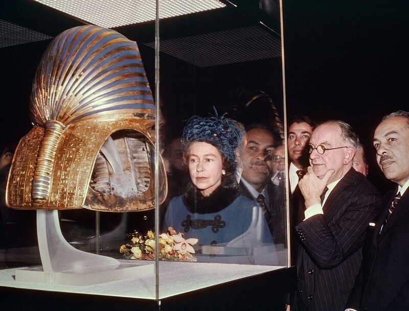 Queen Elizabeth II opens an exhibition of treasures discovered in the tomb. British Museum, London