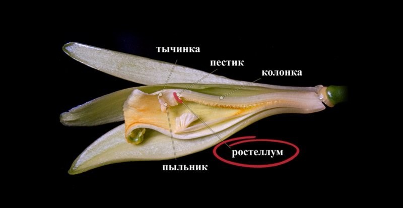 Edmond had an inquisitive mind and a good memory and excellent memorized the owner's explanations. Because suggested that pollination may obstruct the septum in the flower. And so it turned out. Rostellum - that the baffle itself is the protruding part of the column on orchid flowers, which separates the stamen from the female part and prevents self-fertilization.