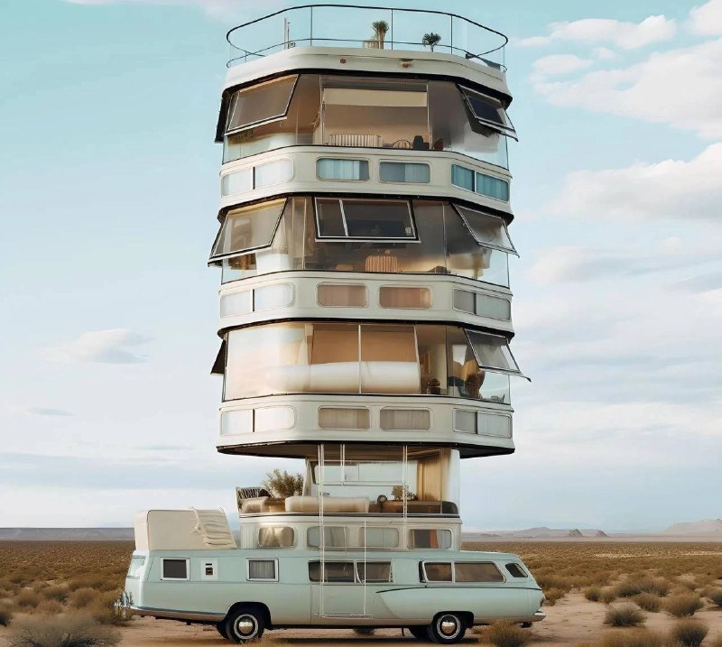 If you ask the Midjourney neural network to design a "luxury and roomy motorhome with a ladder”, then she will cope with the task too Fine