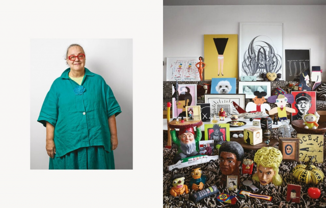 Kim collects pworks of art that tell the story of her own life.