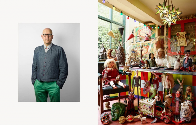 Simon has been building his collection over the years exclusively at flea markets. It includes various spooky rarities and folk art.