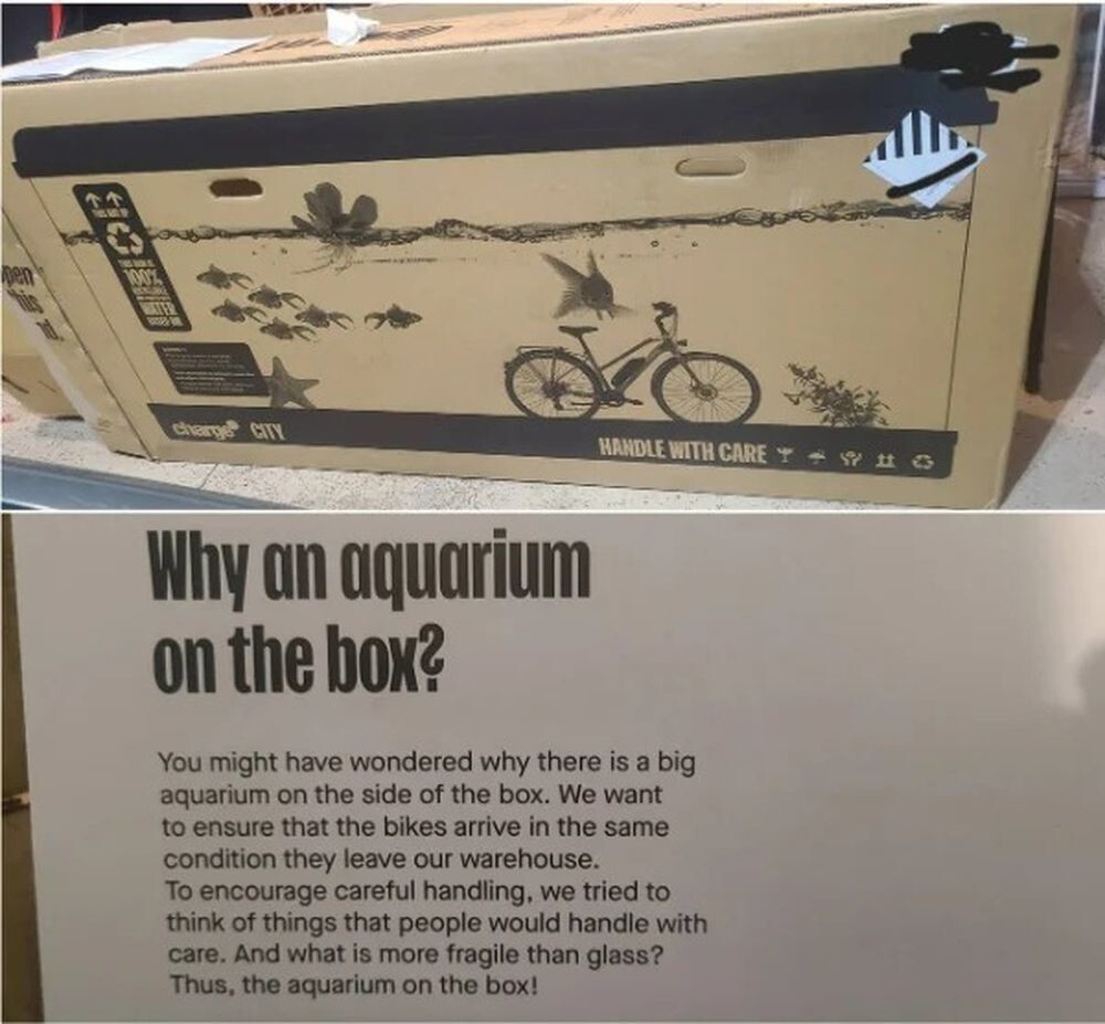 10. The company sends bicycles to customers in boxes with painted aquarium, so that the couriers handle the cargo with care