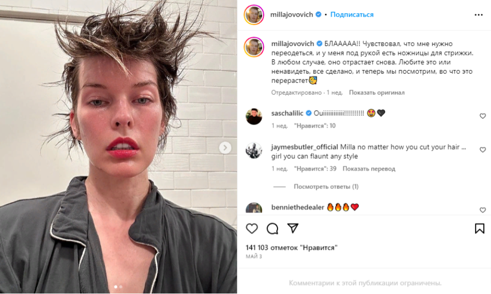 Subscribers of the actress were excited. Many felt that such a sharp change in image may indicate that Milla is now going through hard times.