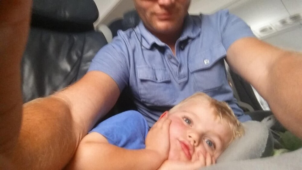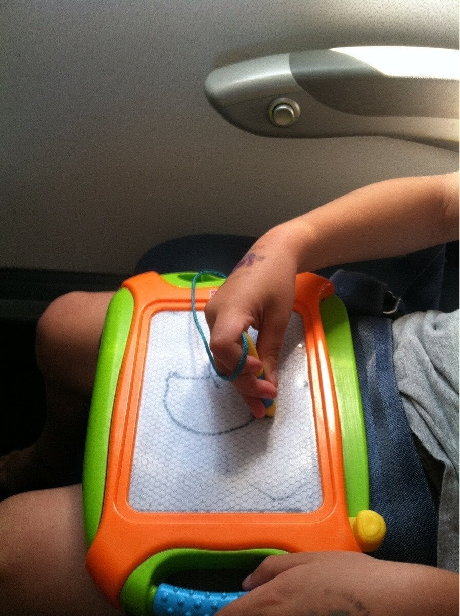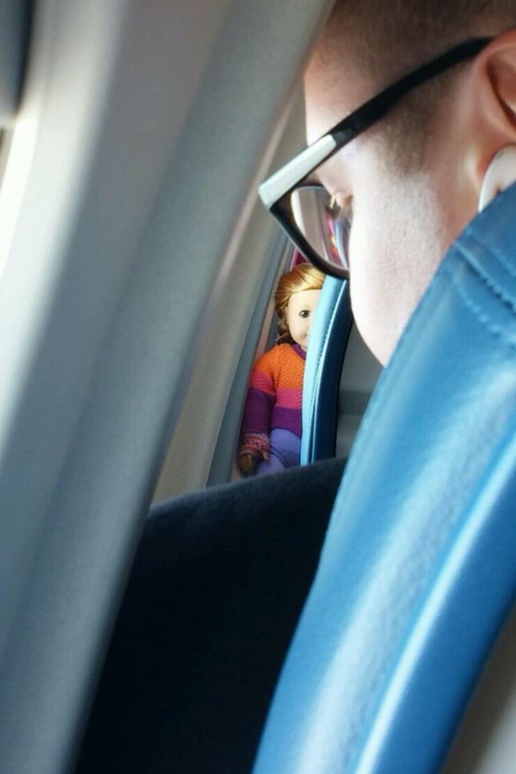 3. Two women nearby were talking loudly throughout the flight. I took this photo thinking my son was sleeping.