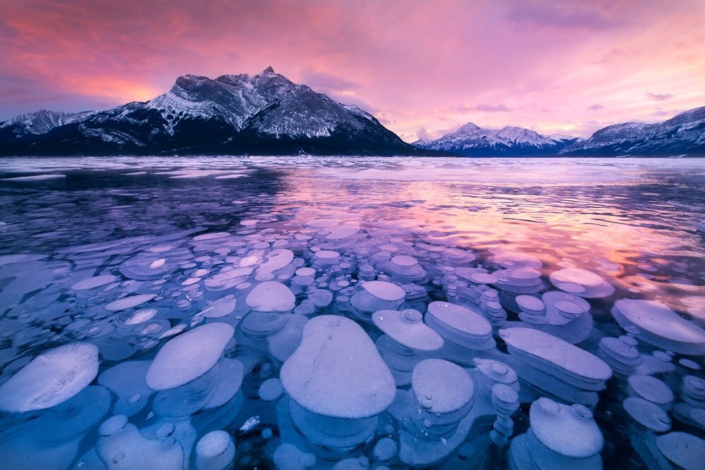 Bubble Lake is called Abraham (Eybraham) and located on the North Saskatchewan River in Canada. It artificial and was created to solve the problems of hydropower.
