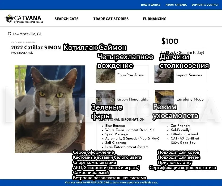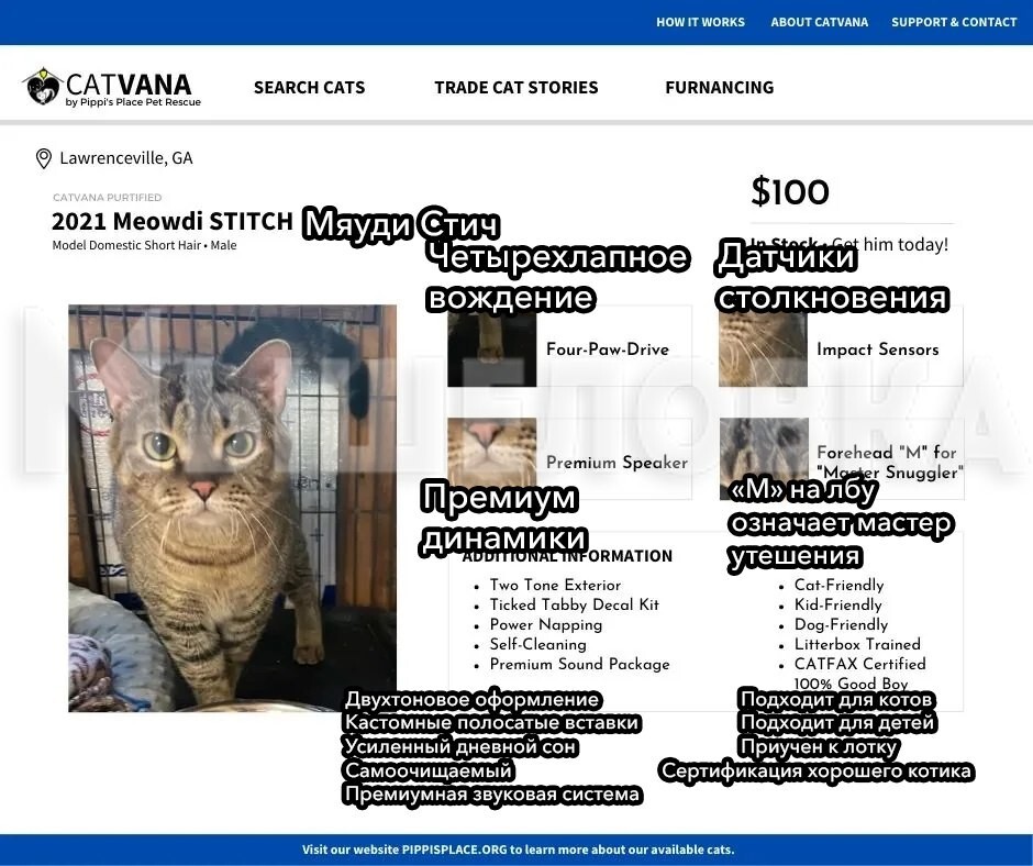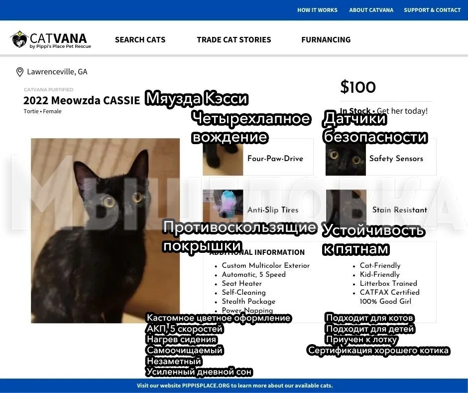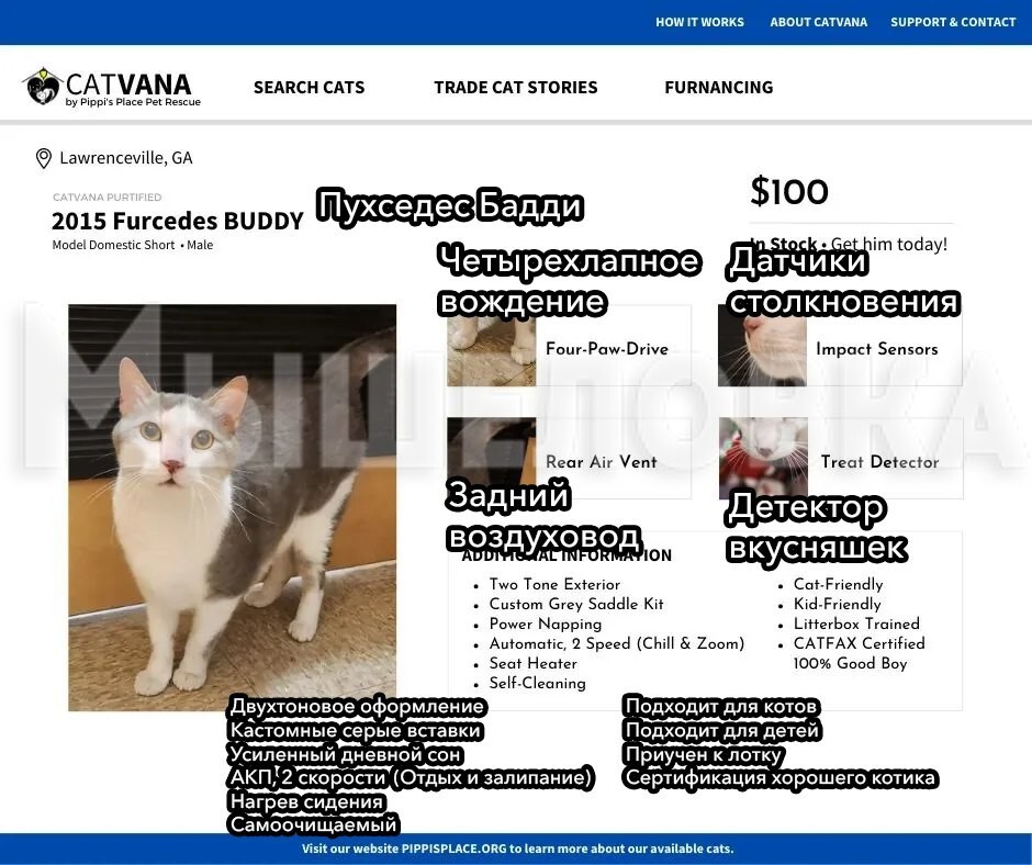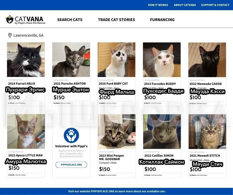 Then the cunning woman made a layout of the site, where she presented her an establishment in the form of a car dealership. And so they appeared "Kotilaki" and "Furrari" with a black and white nose.