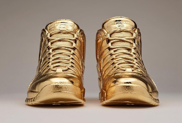 A pair of Solid Gold OVO Air Jordans weigh a whopping 45 kilograms. The American artist Matthew Senna worked on their creation.