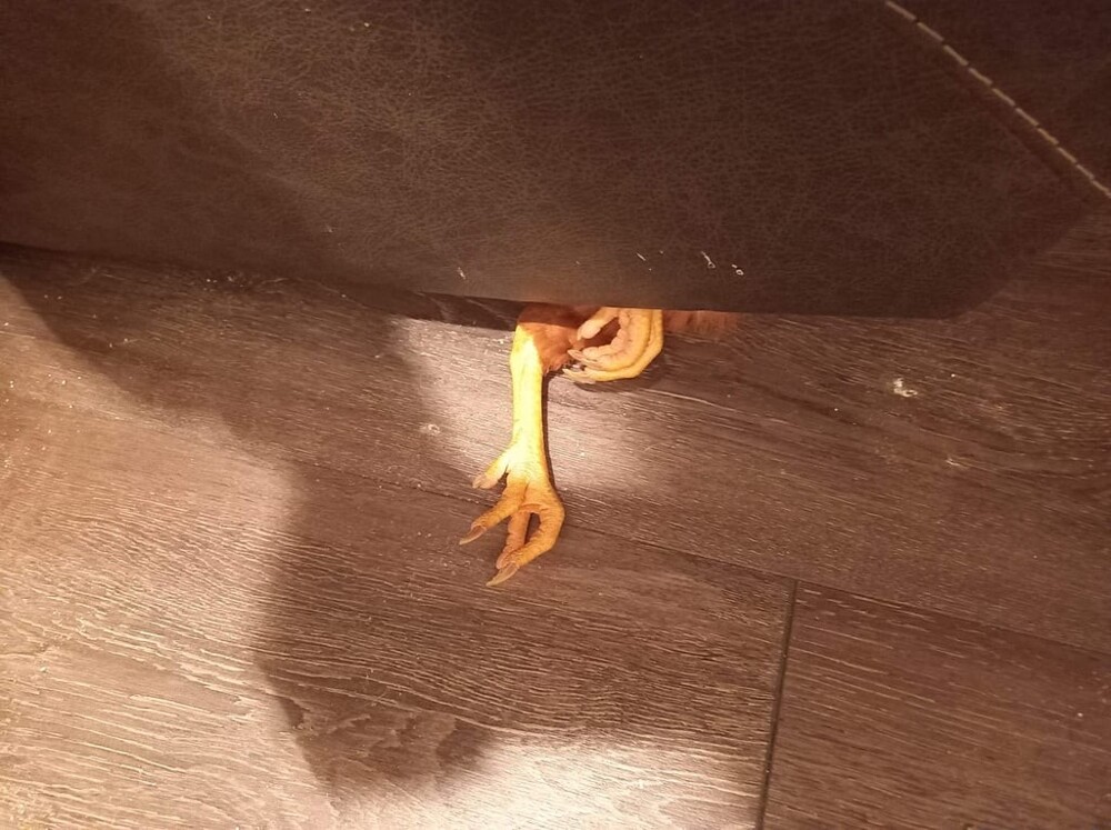 11. Chicken is fine. She just thinks she's a cat and that's why she gets stuck under the couch