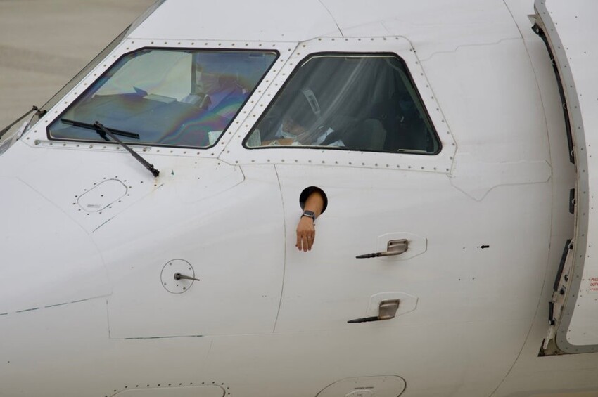 8. The cockpit of this Saab plane has a hole for the pilot's hand.