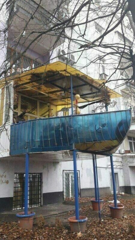 Perhaps in an apartment with such a balcony lives a sailor who has gone to resignation. He probably missed the sea so much that he decided to take a piece of his former profession with him to the apartment.