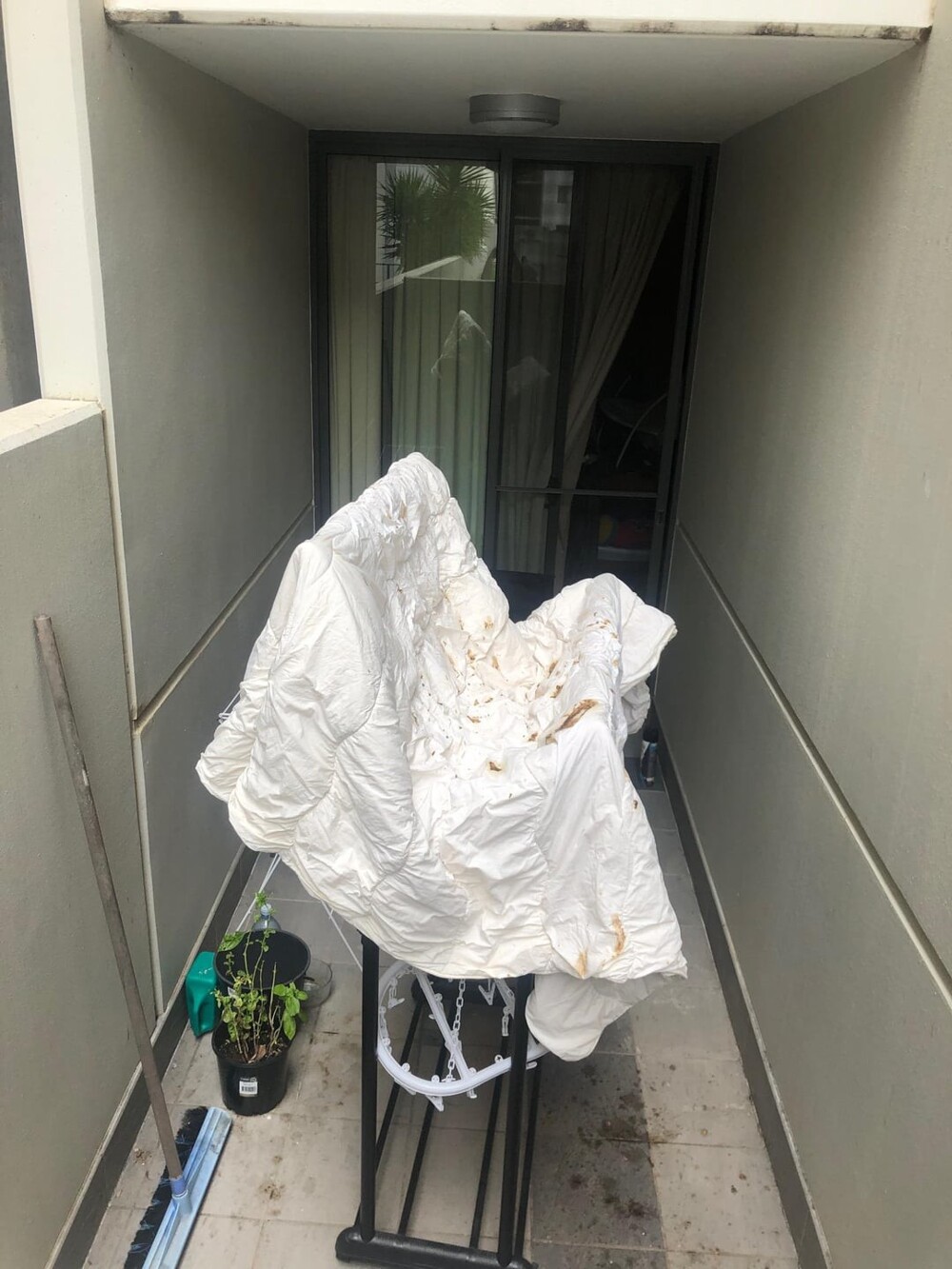 9. "Neighbour upstairs vomited. Right on our blanket that was on the dryer. Thank you."