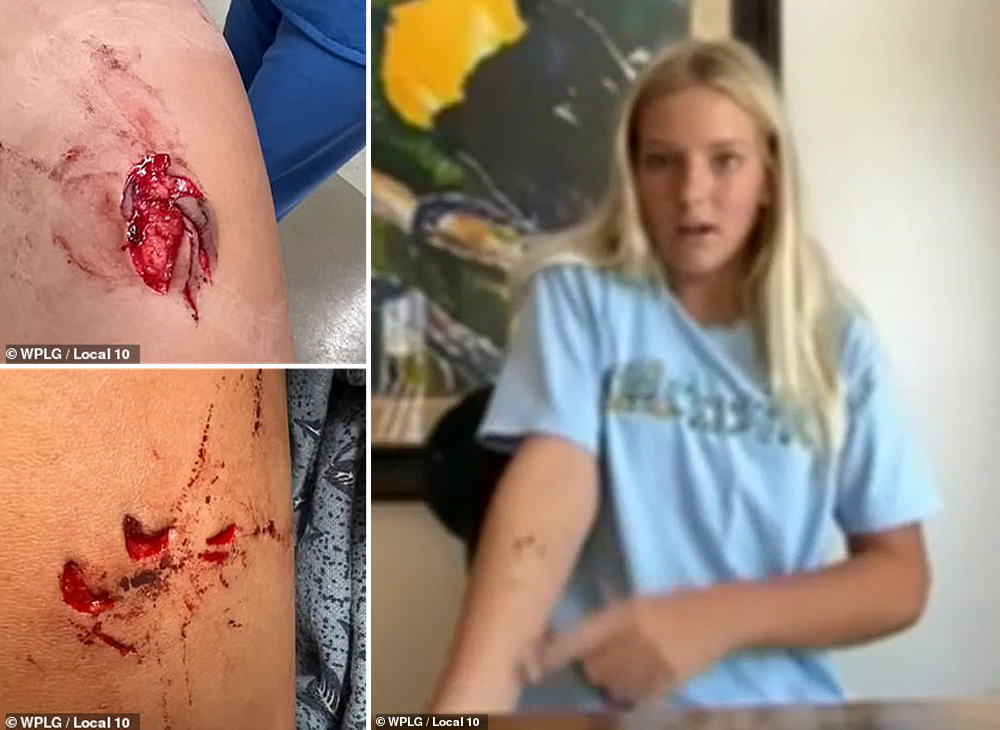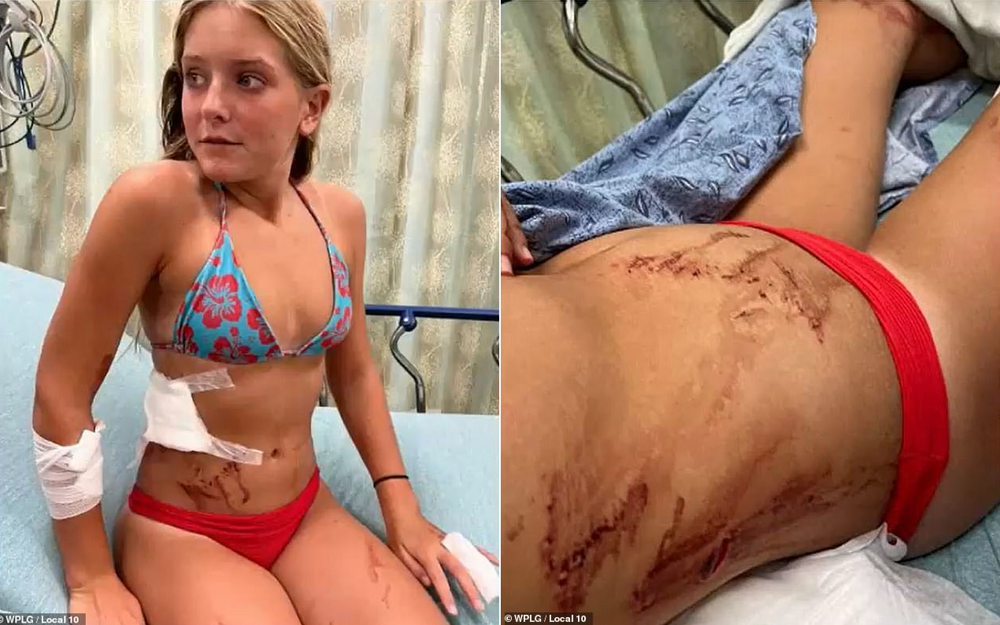 The girl suffered abdominal injuries, according to Local 10 News. hand, finger and knee, and had to undergo a total of 19 stitches. Despite this, Ella said she didn't feel pain at first.