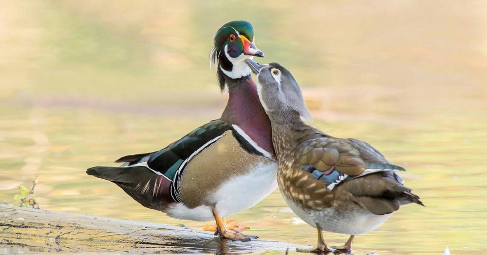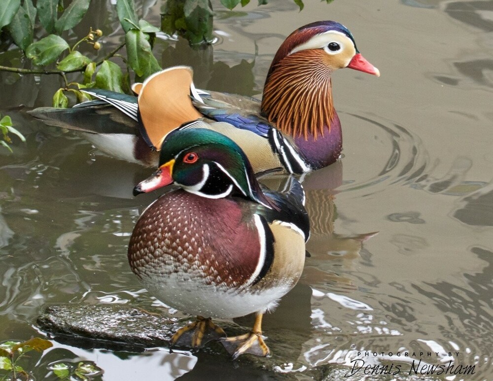 Mandarin duck on top, caroline duck on the bottom