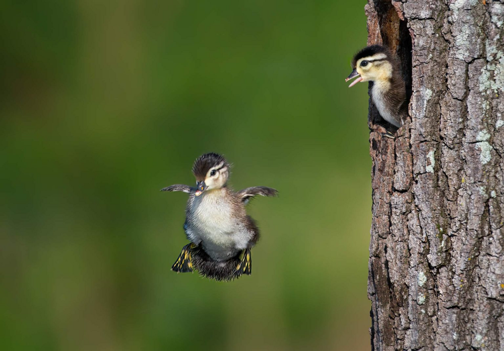 Under ideal circumstances, mother duck organizes own nest. And in 28 - 35 days he will sit out 13 - 15 little ducklings. Children will be born more independent than the chicks of other waterfowl. Already for the second day they land from the hollow on the forest floor. Recall that the height of the nest is at least 7 meters.