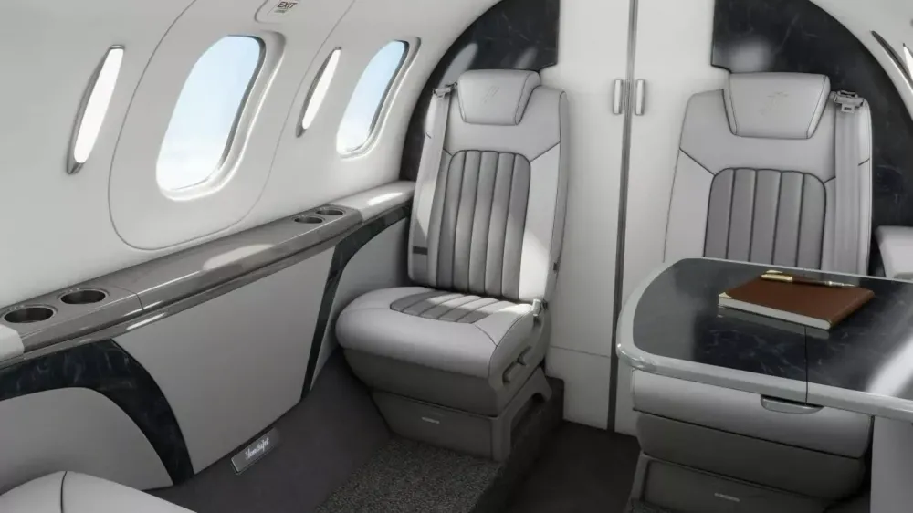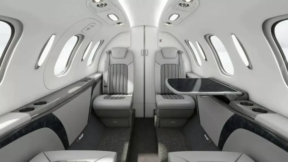Для взлёта и посадки самолёту достаточно полосы длиной 1128 метров. Дальность его полёта достигает 2865 километров. В салоне, помимо мест двух пилотов, располагаются четыре роскошных кресла для пассажиров. Салон называют самым просторным в классе.