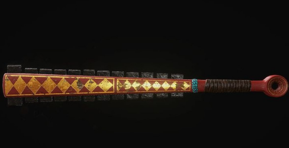 The weapon was also called macuavitl, macuahutl, macuahuitl - “hand stick”, as the Indians of Mesoamerica affectionately called it. Shaft macuahuitl was made more authentic, carvings and drawings were applied to it. Both grooves were made on the sides: they were filled with a sticky mixture of plants, resin, clay and other ingredients, and then they inserted blades from obsidian.