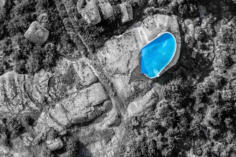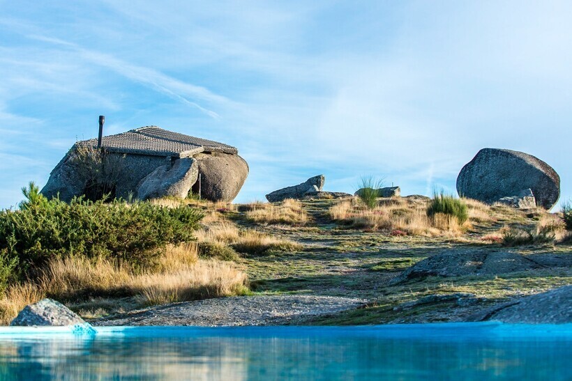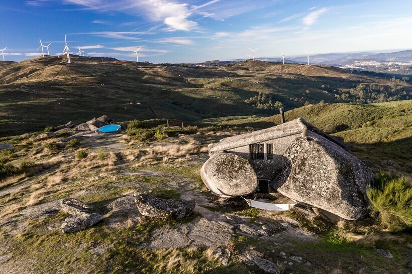 Casa do Penedo even has a swimming pool, which is also inscribed in the surrounding landscape: it is irregular in shape, and the bottom and part of the walls are local breed.