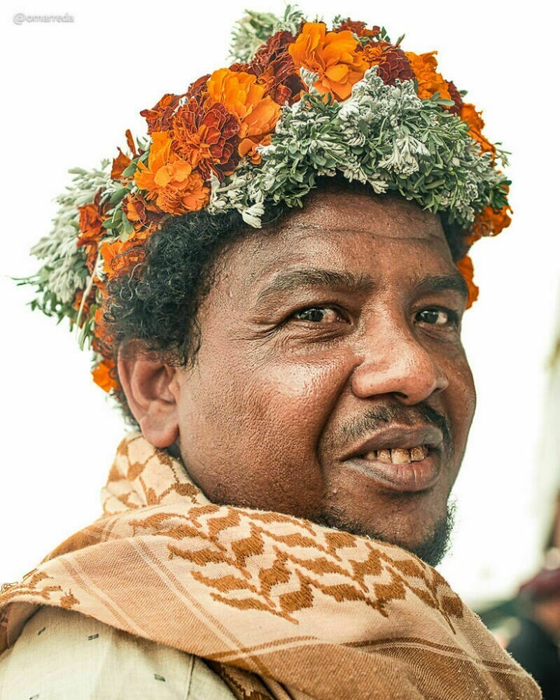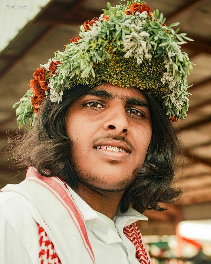 Why Saudi Arabian men decorate themselves with flowers (16 photos)