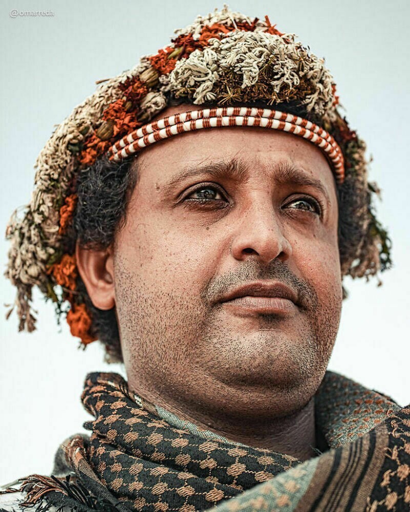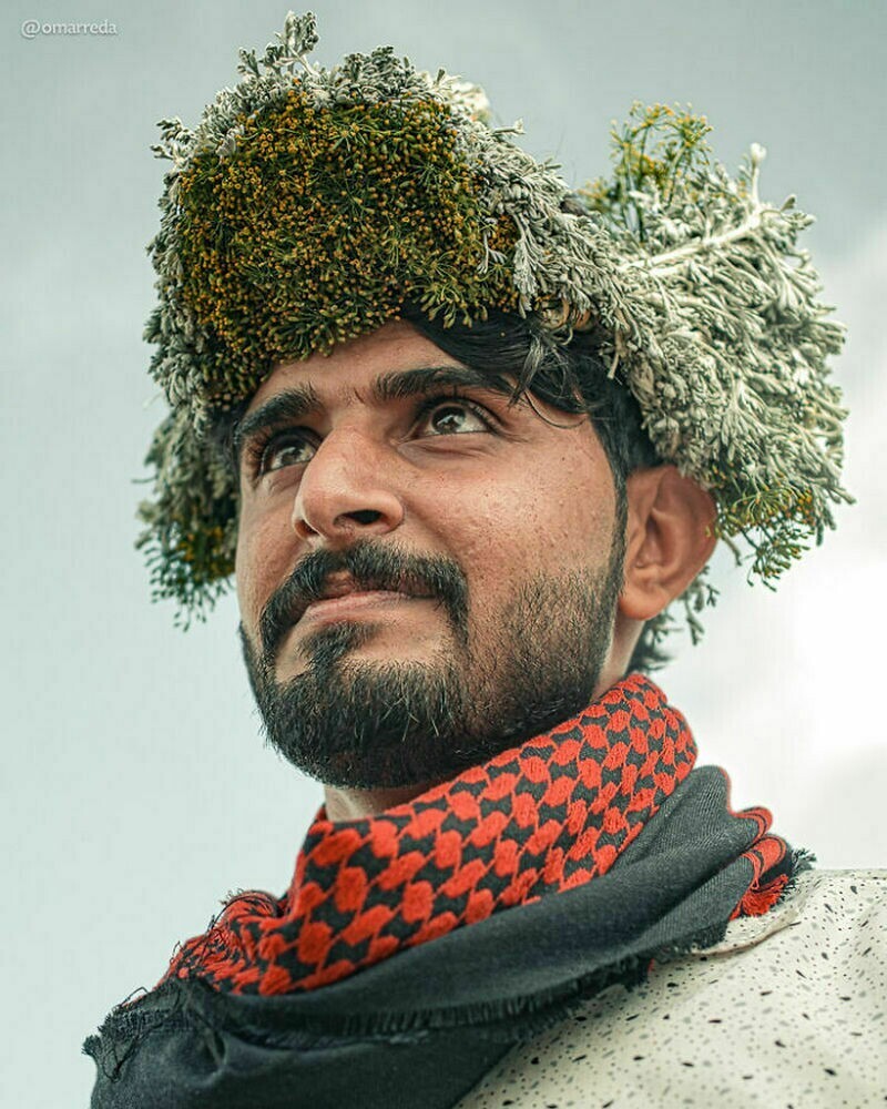 Qahtanites live in Saudi Arabia, and one of their traditions difficult to associate with the strict image of the Arabs. The point is that men people adorn themselves with flowers. They wear wreaths on their heads, and sometimes even flower necklaces on the chest. Photographer Omar visited these people Reda.