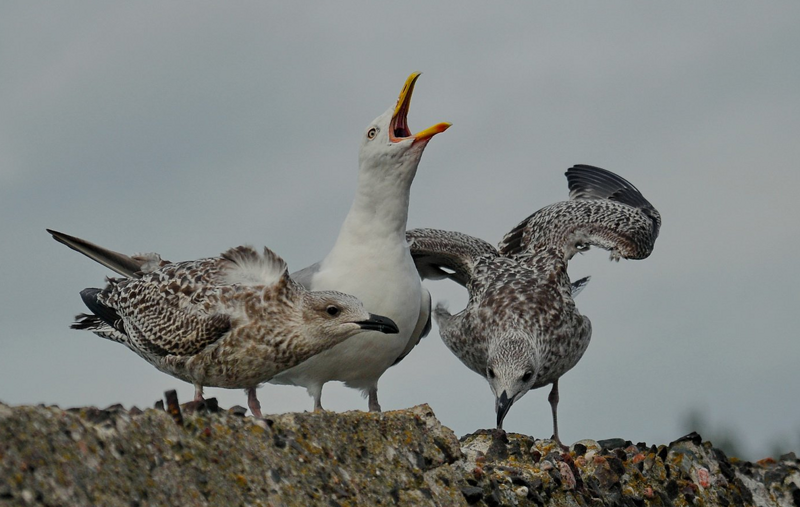 The response of an adult gull to the attention of a cub, when he sticks his beak into the mark, he is also a releaser. Otherwise, the feathered parent will just stand nearby and stick into space, not particularly in a hurry to share lunch. Actions the chick provokes regurgitation of food, the seagull simply does not think and feeds.