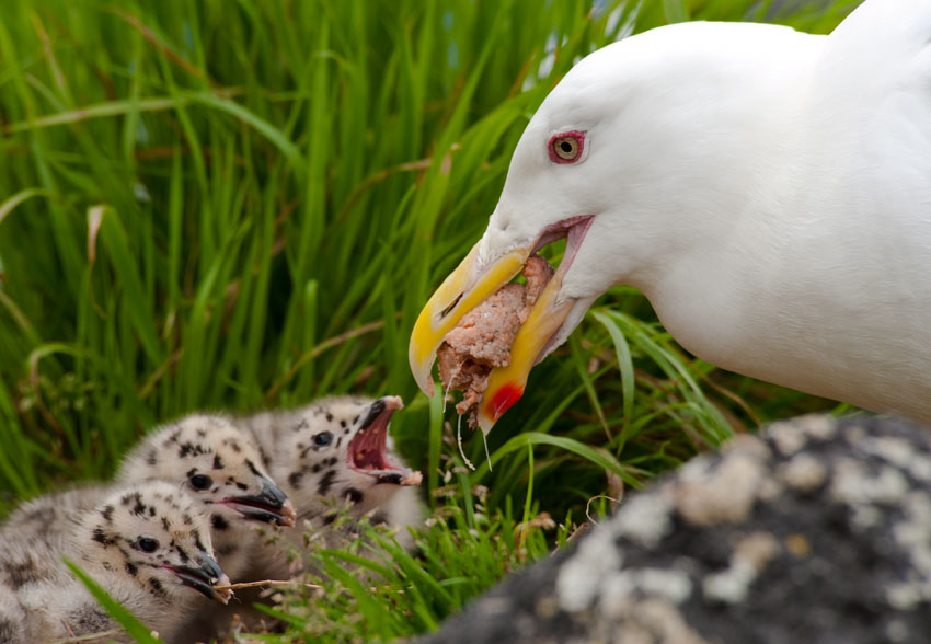 A red spot that helps seagulls interact with chicks (7 photos)