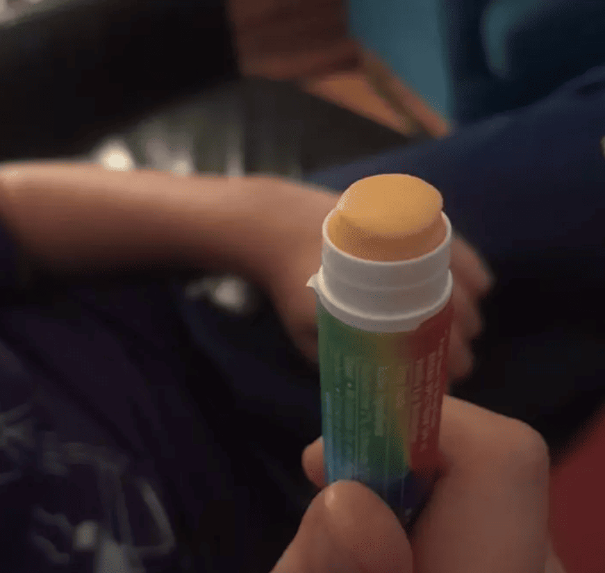 My 9 year old daughter put cheese in an old lip balm to eat in class.